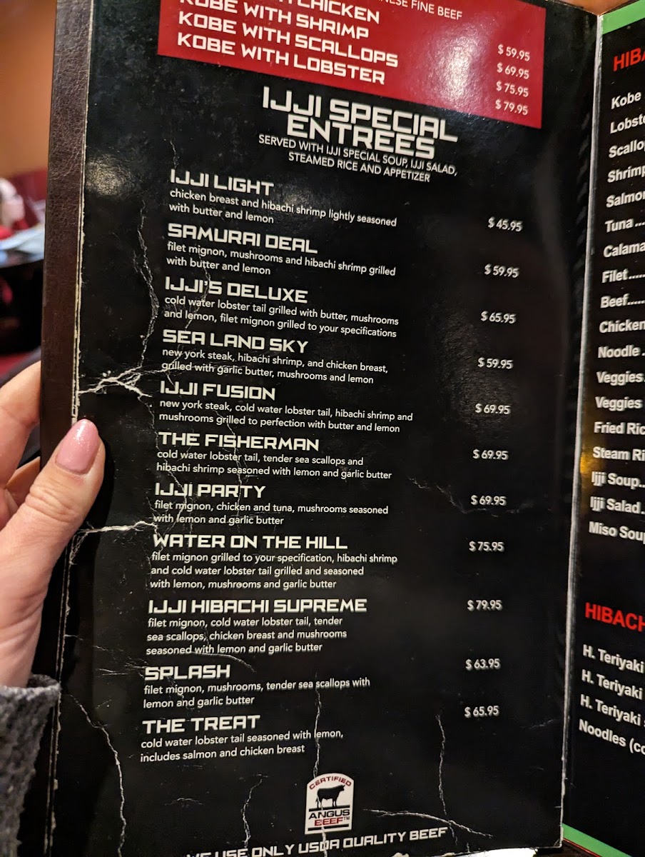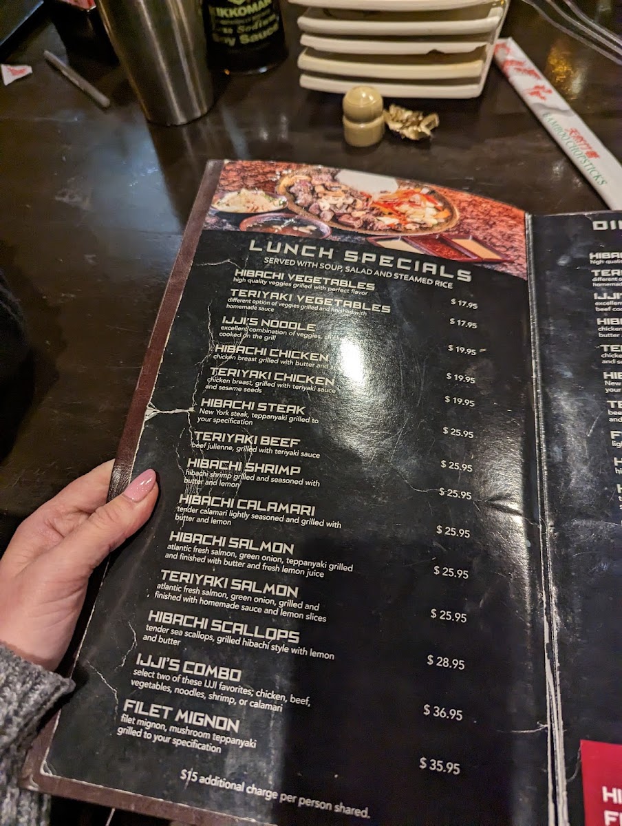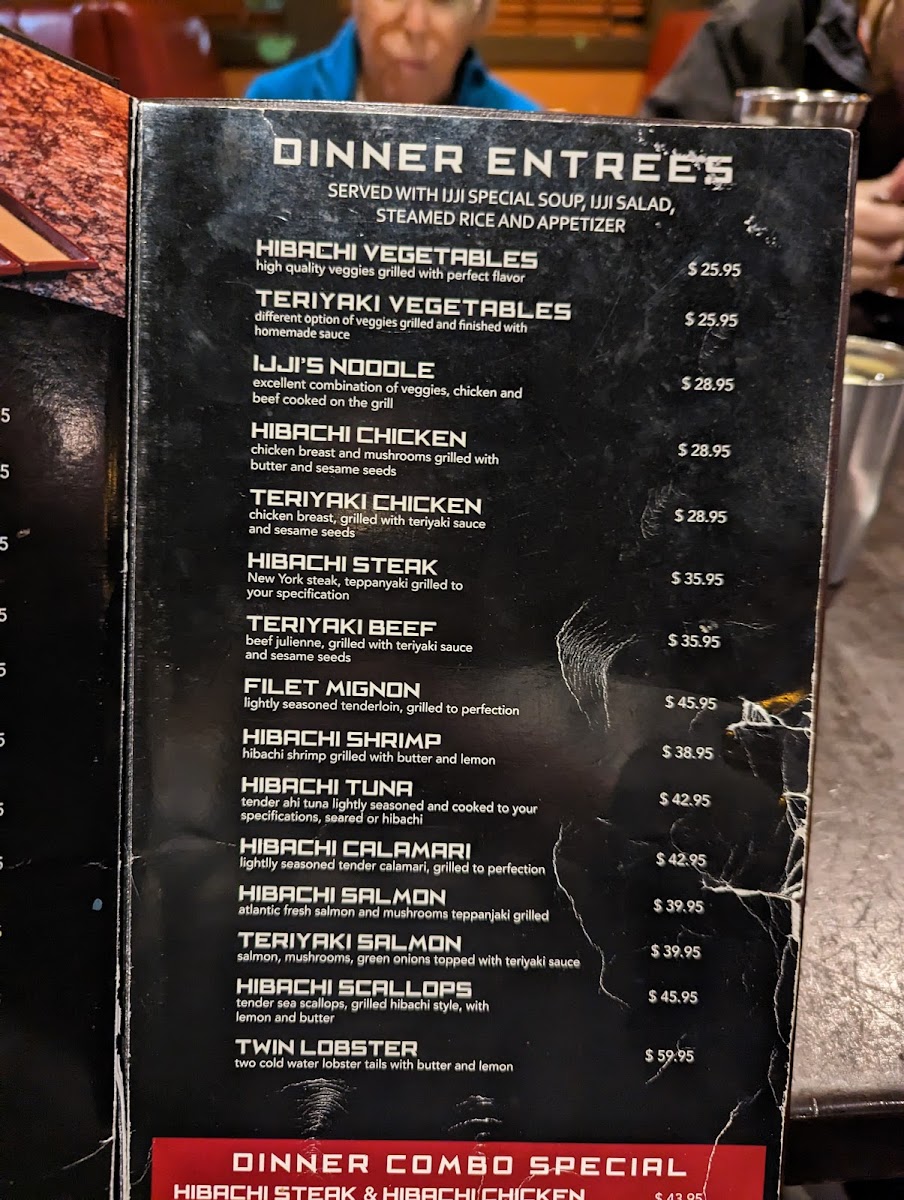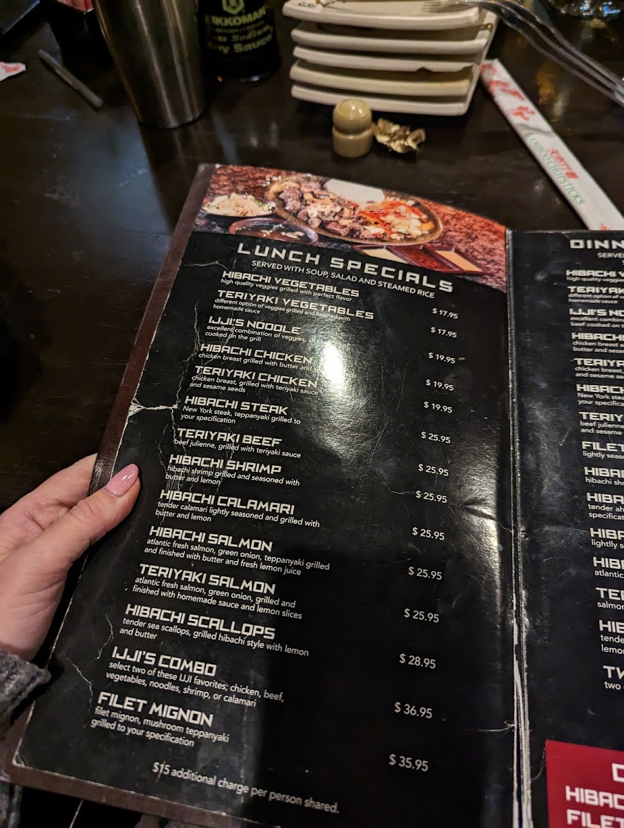 Ijji 2 also presents a Hibachi Kids Menu, perfect for introducing younger diners to the joys of Japanese cuisine. Choices like Hibachi Chicken ($16.04) and Teriyaki Beef ($19.49) will please even the pickiest of eaters.